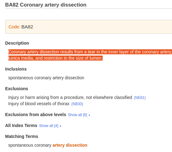 Cette classification en est aujourd’hui à sa 11ᵉ révision, appelée CIM-11 (ICD-11 en anglais). C’est dans cette version que la SCAD a été inclue.